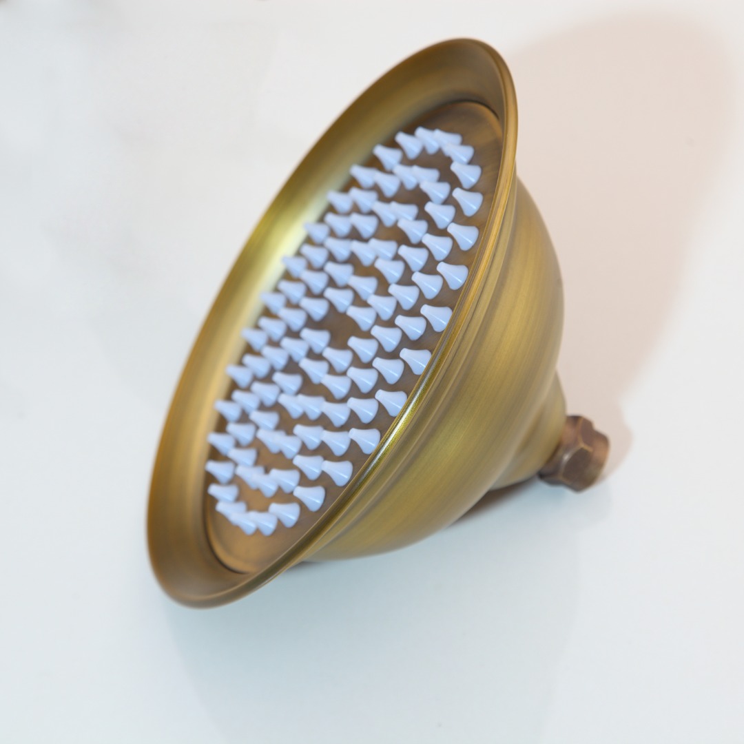 Geef je badkamer een warme, landelijke uitstraling met deze bronskleurige regendouchekop. Het ronde design met brede sproeiplaat zorgt voor een comfortabele, gelijkmatige waterverdeling en past naadloos bij klassieke en landelijke douchesets.