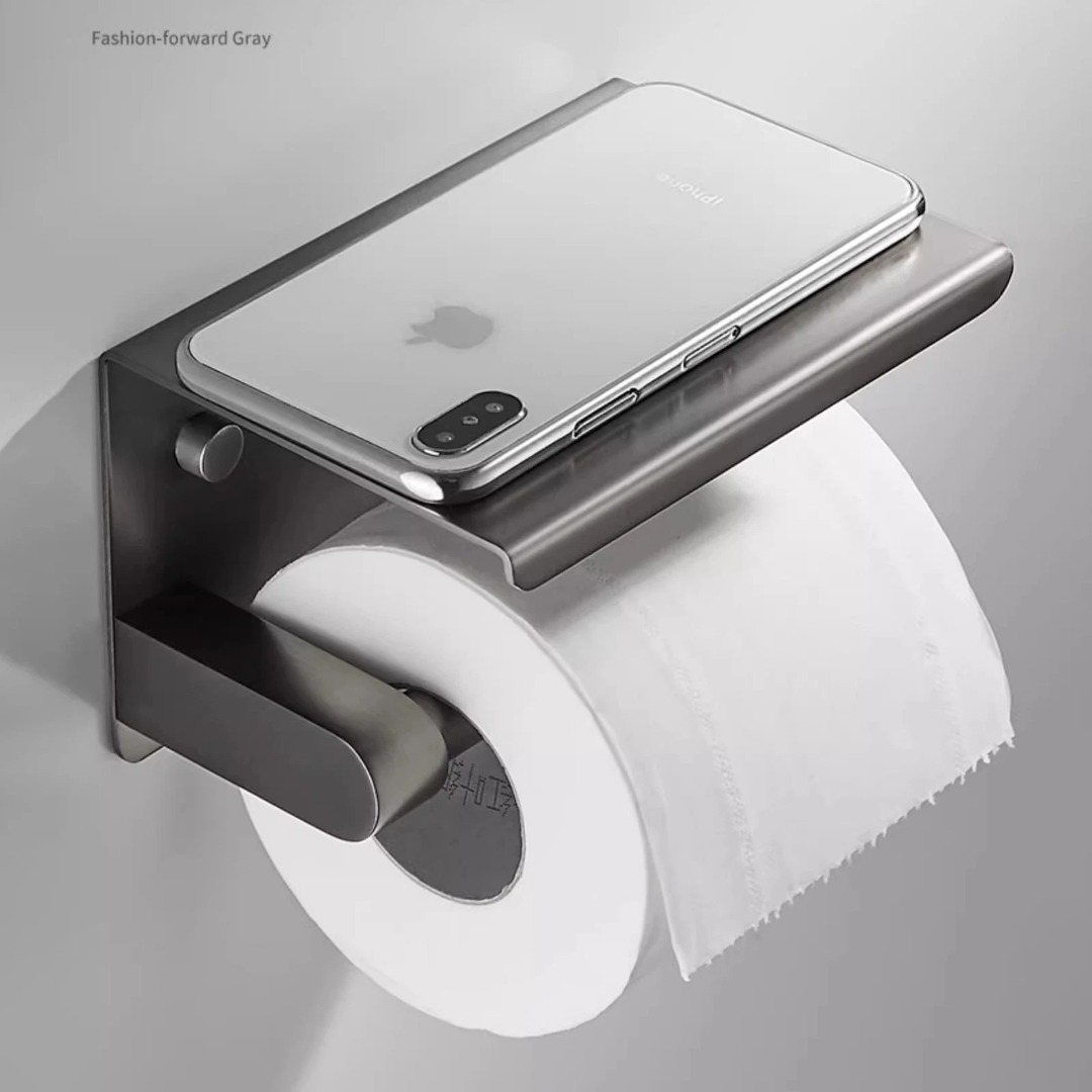 Bestel vandaag nog en maak je toilet compleet met deze gun metal wc-rolhouder met handig plankje.