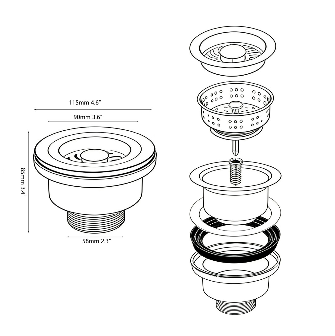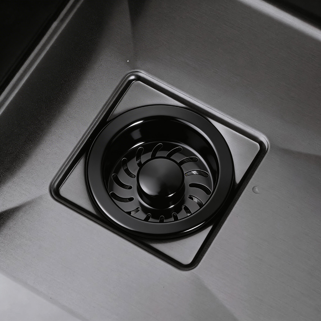 Deze hoogwaardige gootsteenafvoer in een moderne zwarte afwerking combineert een strak design met praktische functionaliteit. De afvoer is voorzien van een stevige PVC-onderzijde en een handig afsluitmechanisme, waardoor je de afvoer eenvoudig kunt openen of sluiten door het rooster in te drukken.