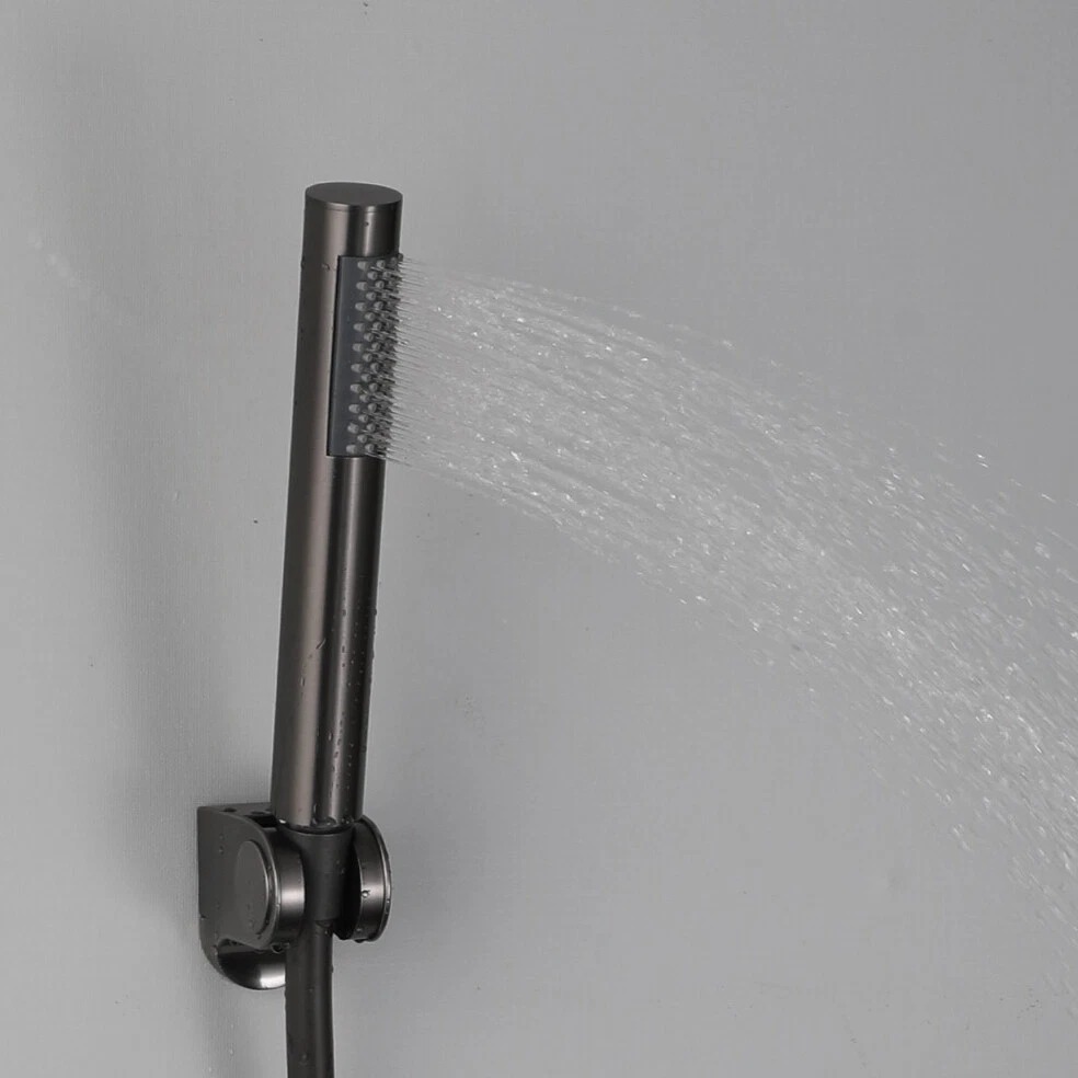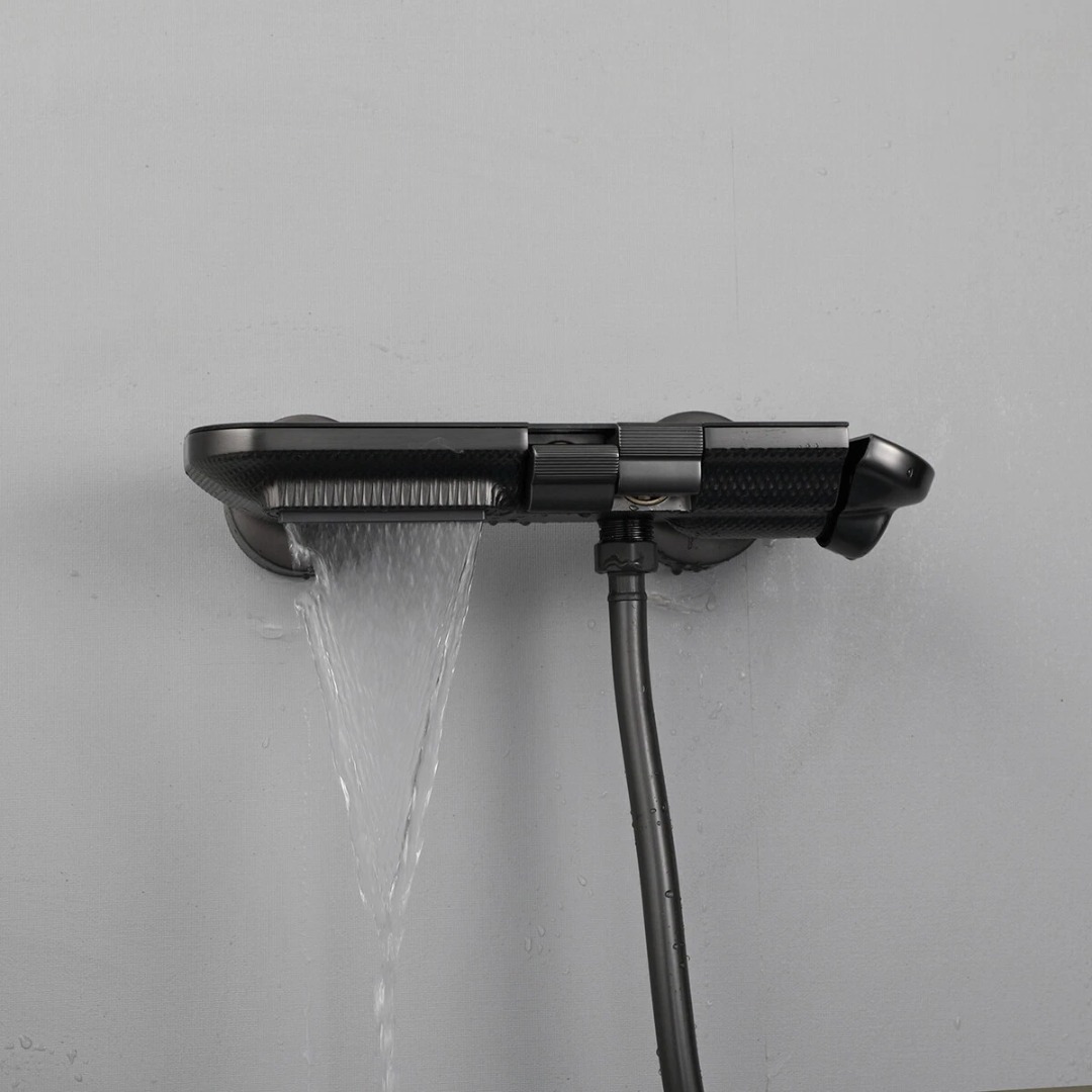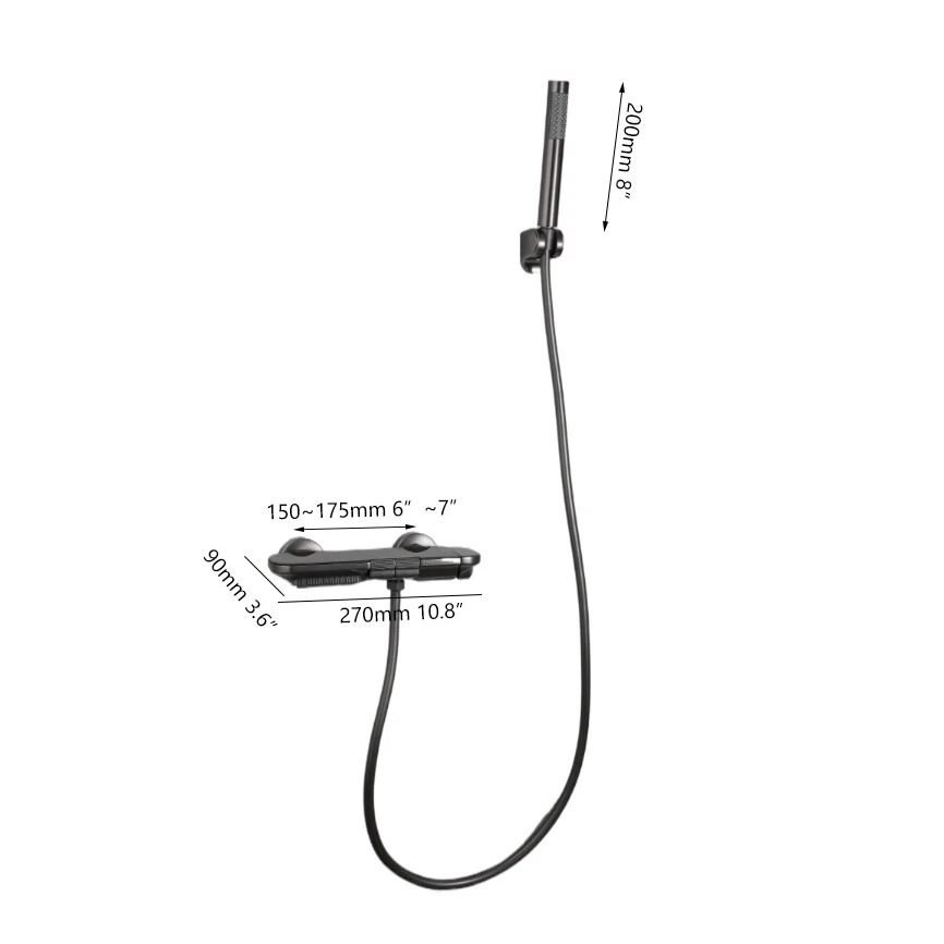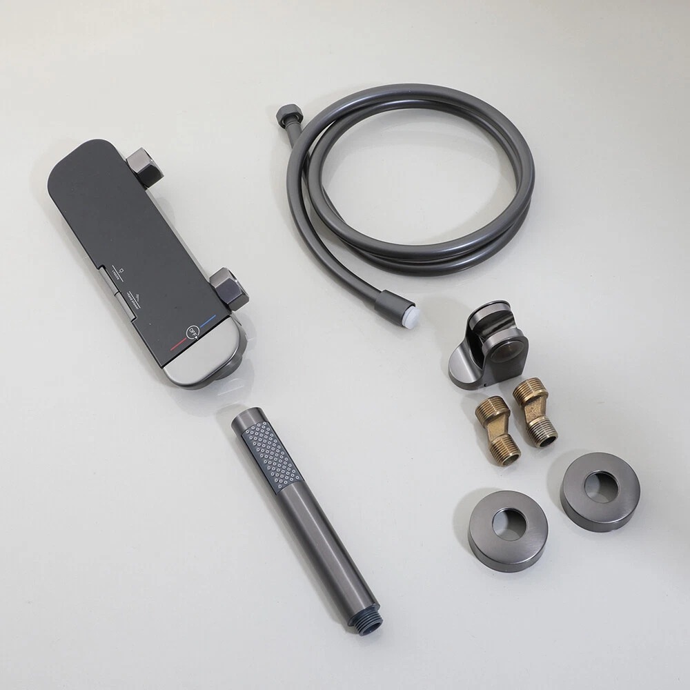 Maak je badkamer compleet met deze stijlvolle gun metal thermostatische badkraan met staafhanddouche. Bestel vandaag nog en geniet van comfortabel baden en douchen in een moderne, luxe uitstraling.