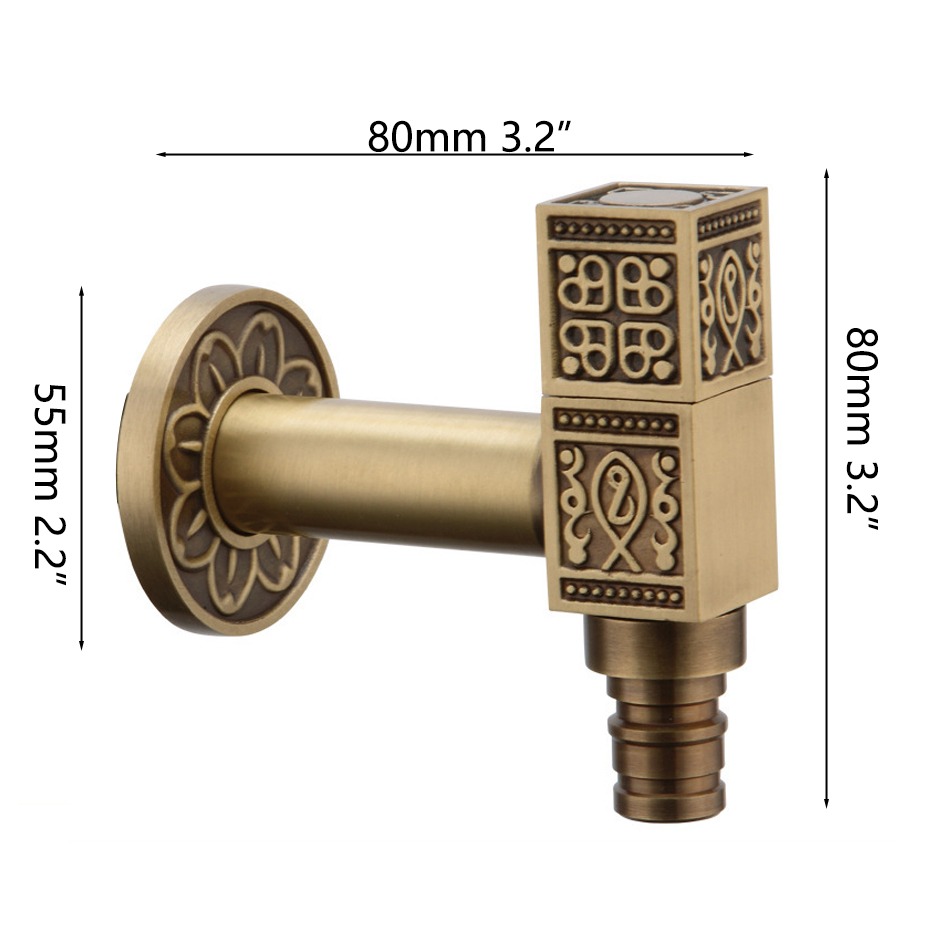 Dit decoratieve bronskleurige muurkraantje voor koud water is een stijlvolle afsluitkraan met klassieke details. Dankzij het luxe ontwerp en de warme bronskleur is deze hoekkraan bijzonder geschikt voor landelijke, klassieke en retro badkamers en toiletruimtes.