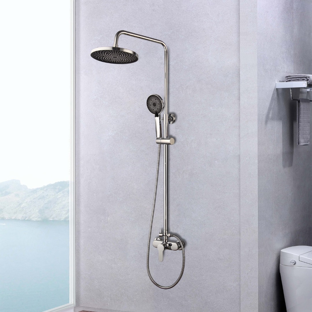 De set is uitgerust met een mengkraan met keramische schijven voor een soepele en nauwkeurige bediening van de watertemperatuur. De regendouchekop is gemaakt van ABS, waardoor deze licht van gewicht is en eenvoudig te reinigen.