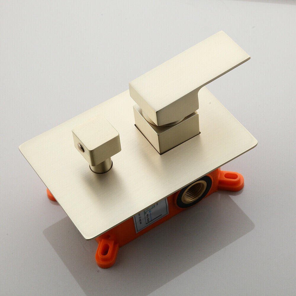 Inbouw douche geborsteld goud met vierkante 20cm grote douche-kop.
