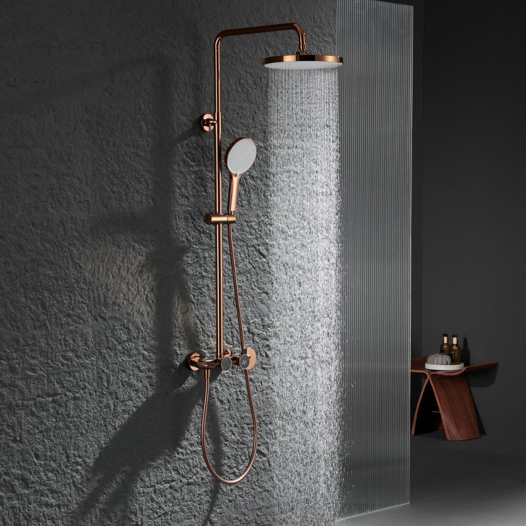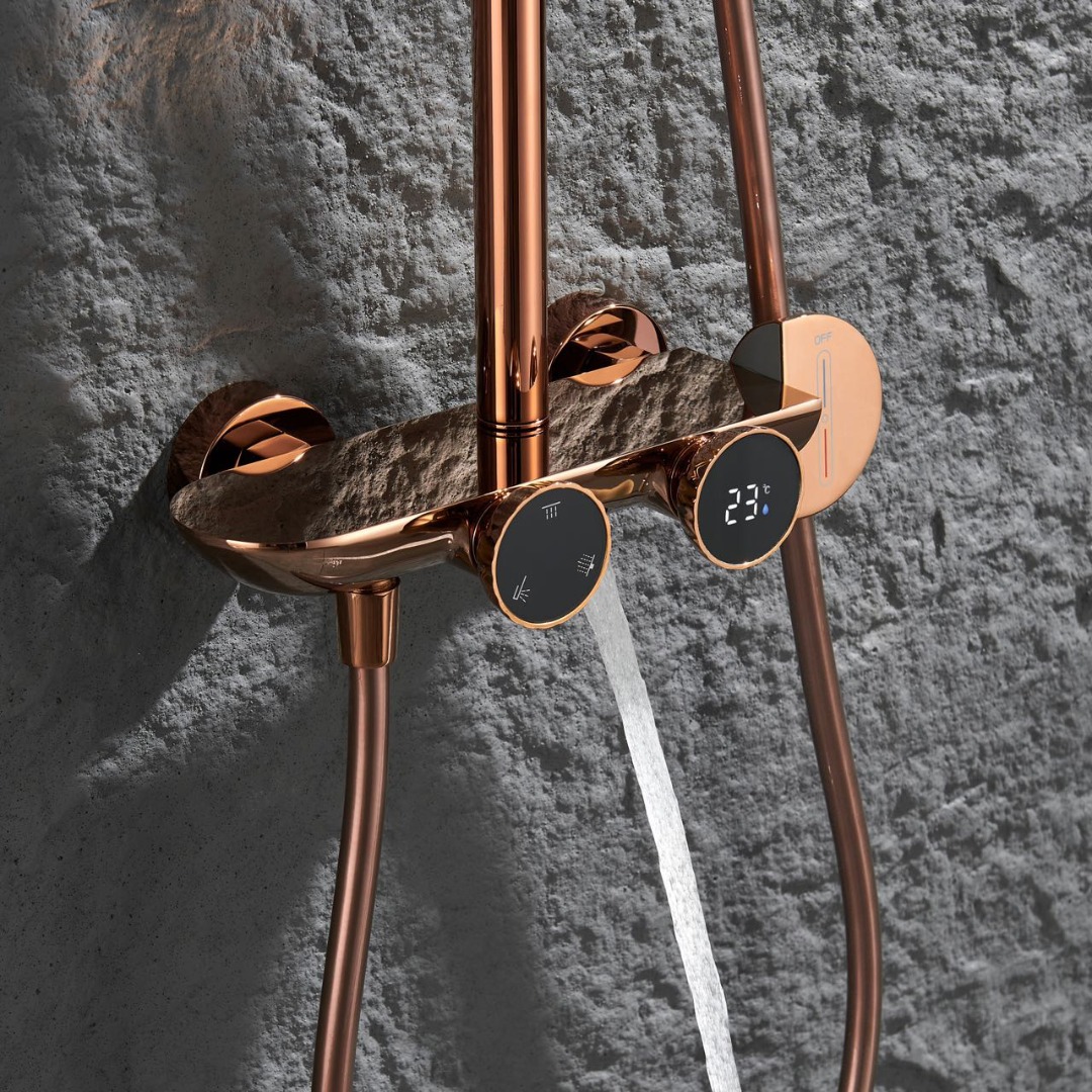 Upgrade je badkamer met deze high-end Malvizza regendoucheset in roségouden afwerking. De set combineert een royale regendouche met een praktische handdouche en een nauwkeurige thermostaat voor constant comfort. Duurzame PVD-coating voor een diepe glans en lange levensduur.