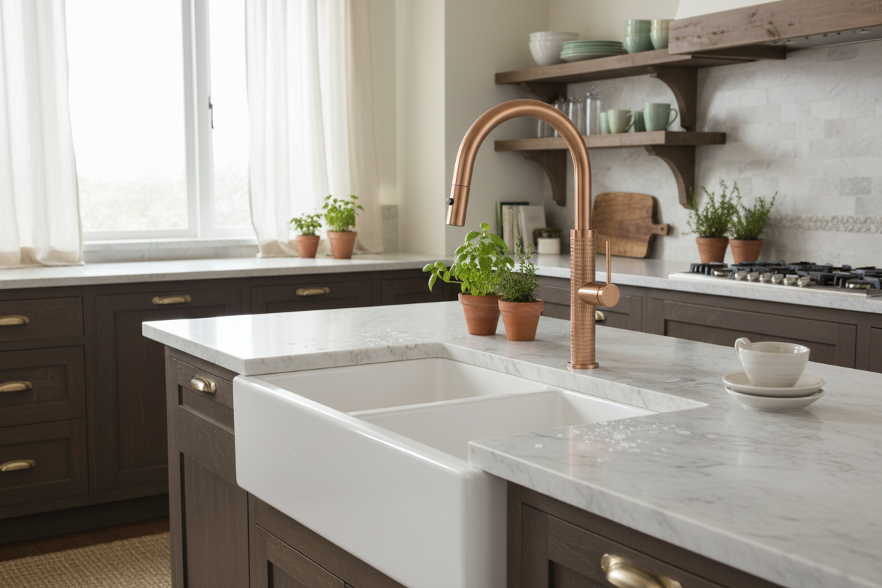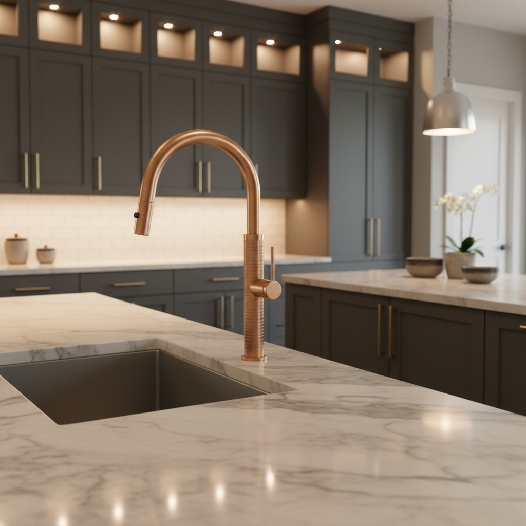 Bestel vandaag nog en geef je keuken een luxe en stijlvolle uitstraling met deze rosé gouden keukenkraan.