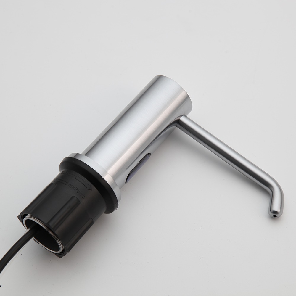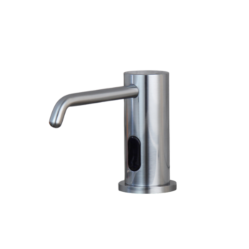 Dankzij de contactloze infraroodsensor wordt per gebruik automatisch en consistent zeep gedoseerd. De installatie is eenvoudig: de dispenserkop wordt in het kraangat geplaatst en het reservoir met de voeding wordt onder het blad gemonteerd. De dispenser werkt standaard op batterijen; een netstroomadapter is optioneel verkrijgbaar.