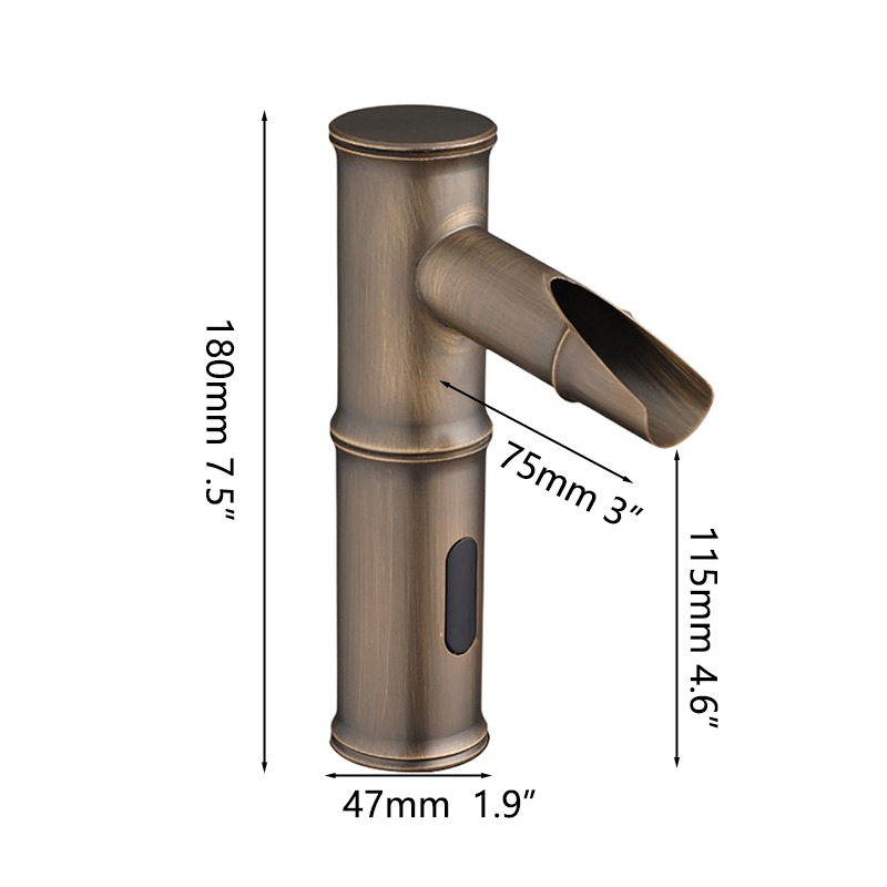 De compacte uitvoering maakt deze sensorkraan bijzonder geschikt voor standaard wastafels en kleinere sanitaire ruimtes. De cilindrische vorm met subtiele segmenten geeft de kraan een moderne en luxe uitstraling die perfect past in zowel particuliere badkamers als professionele toepassingen.