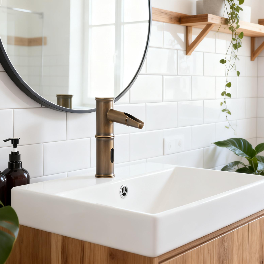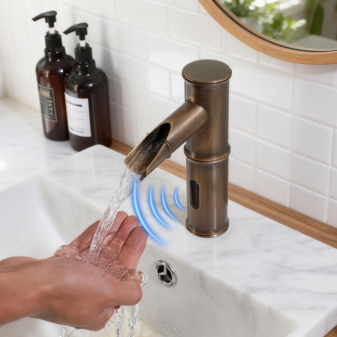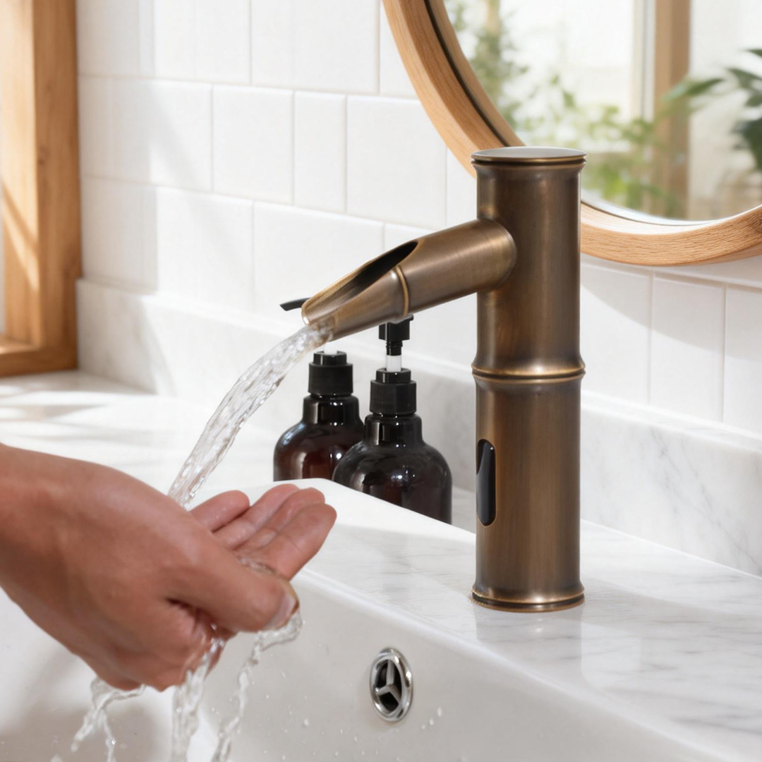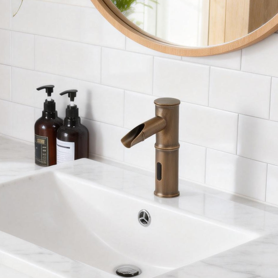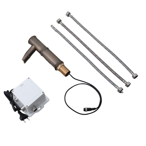 De Sensomatica Kyoto Compact sensorkraan in bronskleur is een stijlvolle en hygiënische oplossing voor moderne sanitaire ruimtes. Dankzij de infraroodsensor wordt het water automatisch geactiveerd zodra je je handen onder de kraan houdt en stopt de waterstroom wanneer je ze weer weghaalt. Dit zorgt voor optimaal gebruiksgemak en een efficiënte waterbesparing.