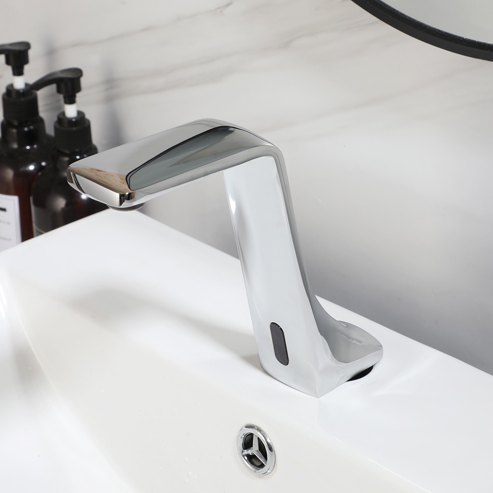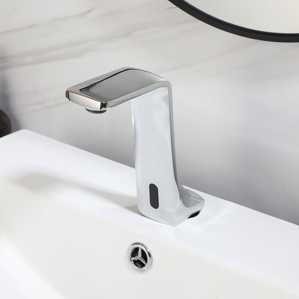 Strakke sensorkraan in duurzame chroomafwerking met infrarooddetectie. Dit is het koud model: direct op koud water aan te sluiten. Met de optionele Sensomatica warmteregelaar maak je de kraan geschikt voor warm of gemengd water—zonder zichtbare aanpassingen aan de kraan.