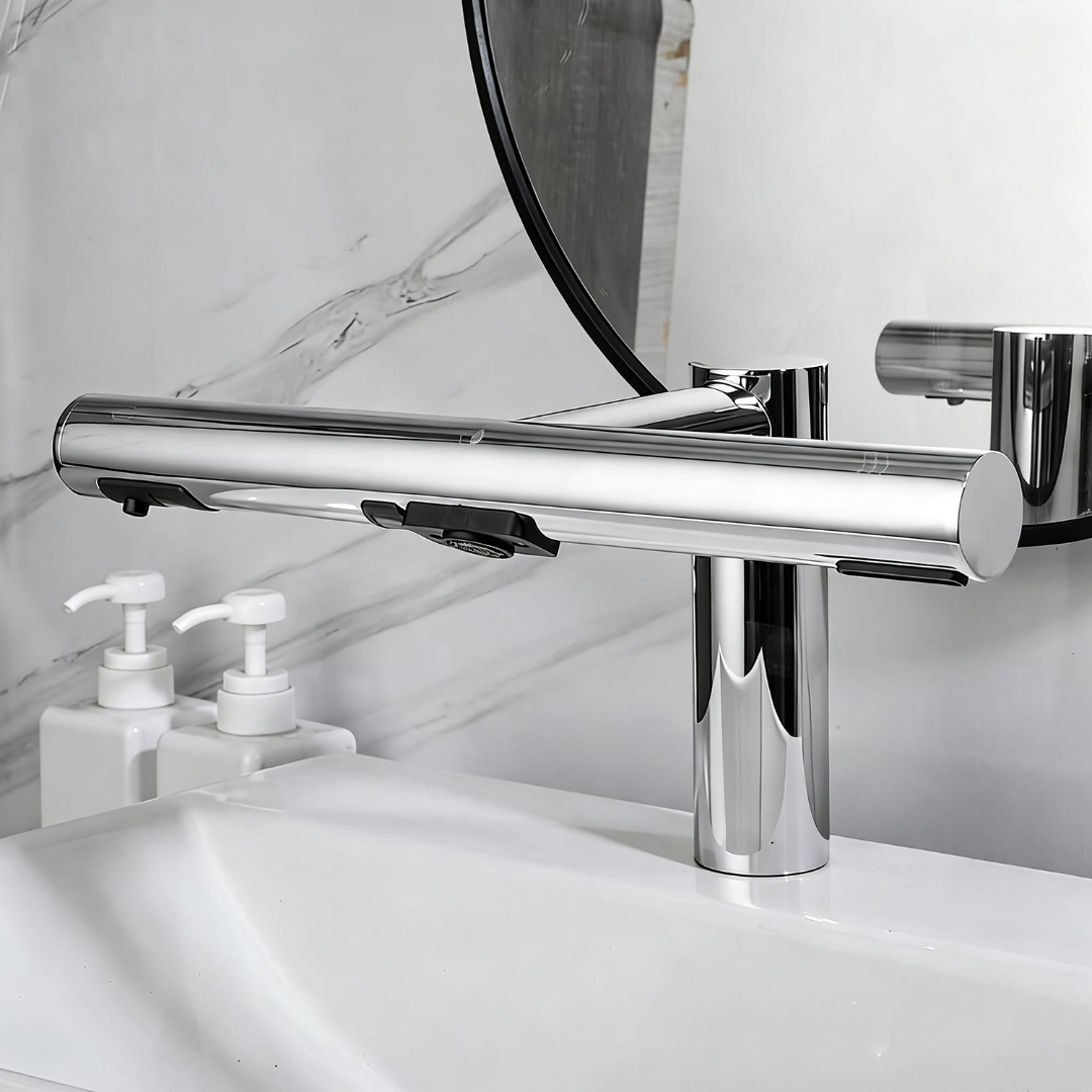 De Sensomatica 3-in-1 sensor kraan in chroom combineert water, zeep en handdroging in één geïntegreerd systeem. Deze innovatieve oplossing is ontworpen voor maximale hygiëne en efficiëntie en voorkomt direct contact met oppervlakken.