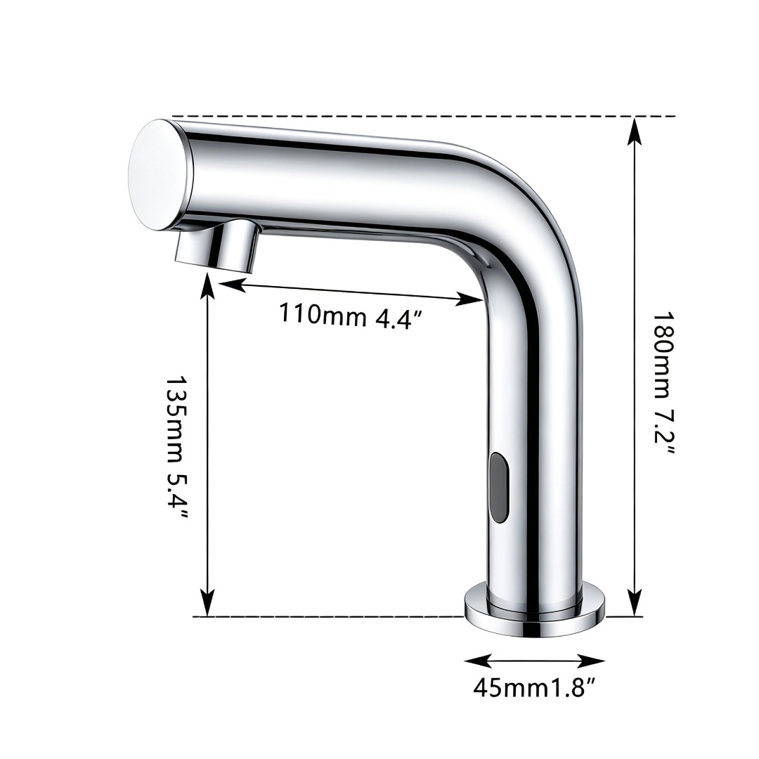 De glanzende chroomafwerking geeft deze kraan een tijdloze en luxe uitstraling, waardoor hij perfect past in zowel particuliere badkamers als commerciële ruimtes. Door de combinatie van touchless bediening, waterbesparing en een strak ontwerp is deze kraan ideaal voor dagelijks gebruik.