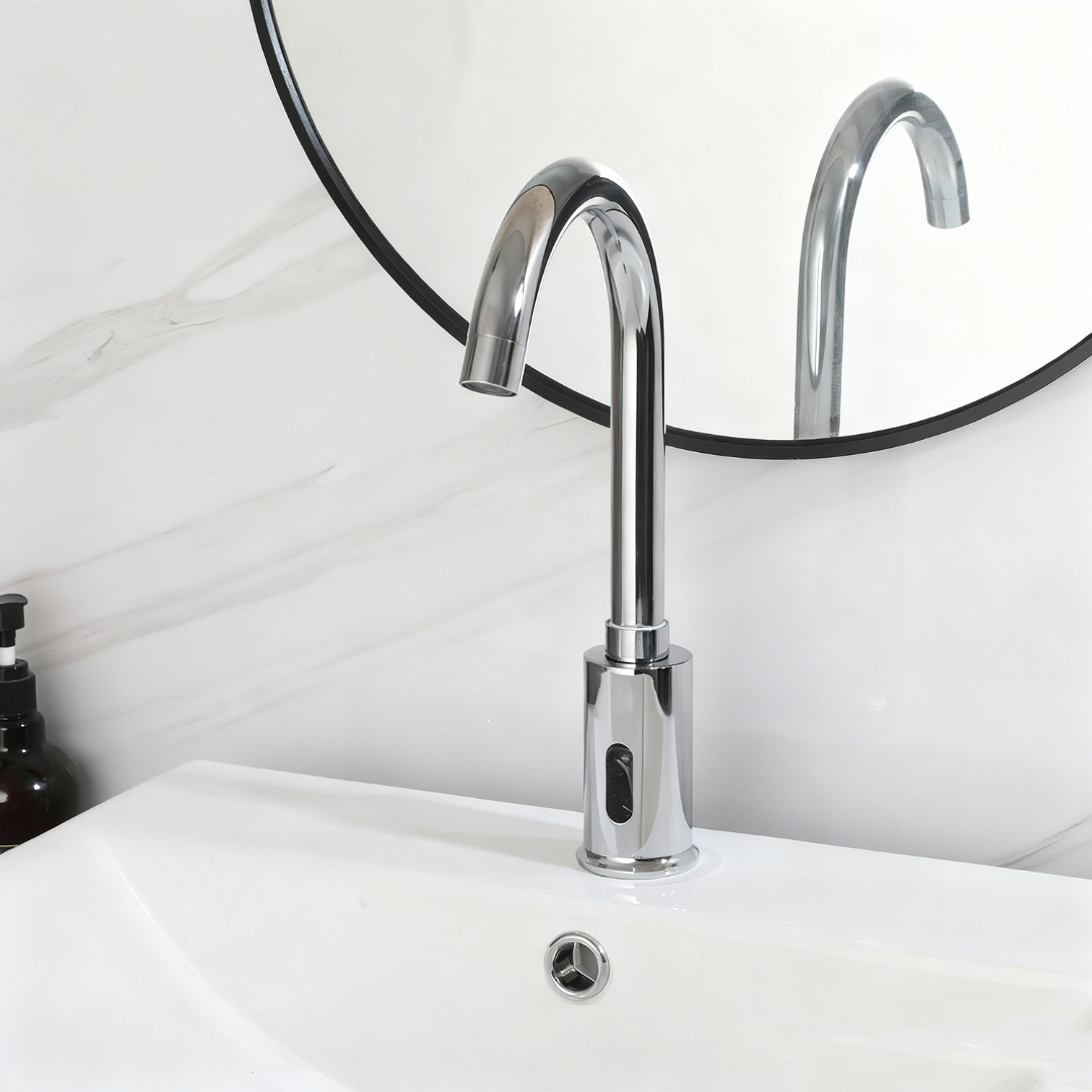 De Sensomatica Alto is een stijlvolle chroom sensorkraan met handvrije bediening. Het water start automatisch wanneer je je handen bij de sensor houdt en stopt direct bij wegnemen — hygiënisch en zuinig voor thuis en commercieel gebruik.