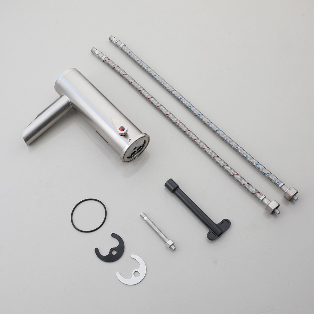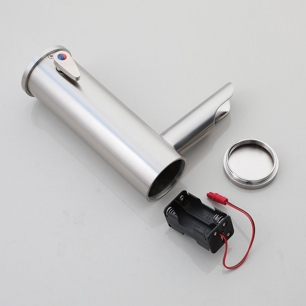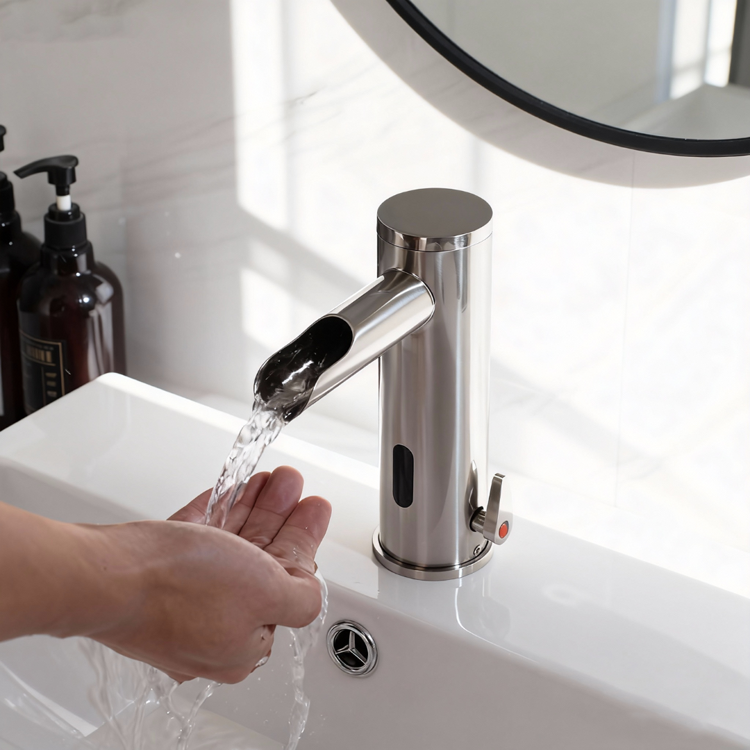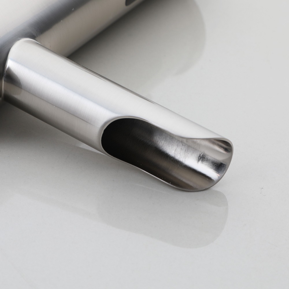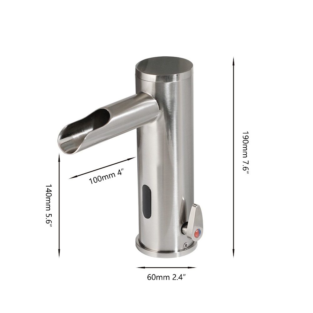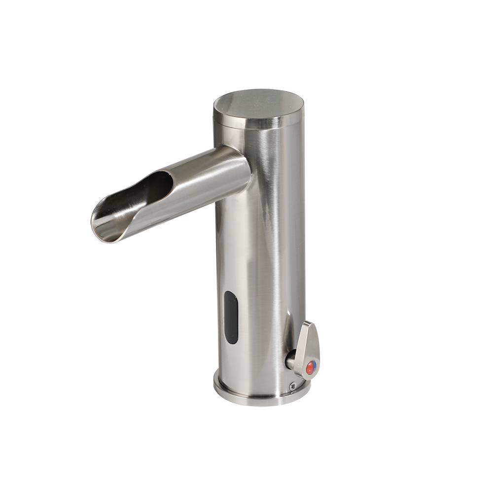 Nikkel geborstelde sensorkraan met een half open uitloop voor een sensationele werking.