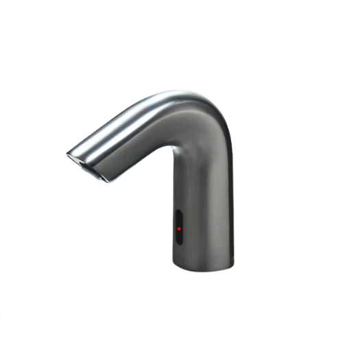 De Sensomatica Eron sensorkraan in gun metal is een robuust en modern vormgegeven model met een krachtige, industriële uitstraling. Dankzij de automatische infraroodsensor wordt het water volledig contactloos geactiveerd, wat zorgt voor optimale hygiëne en gecontroleerd waterverbruik.