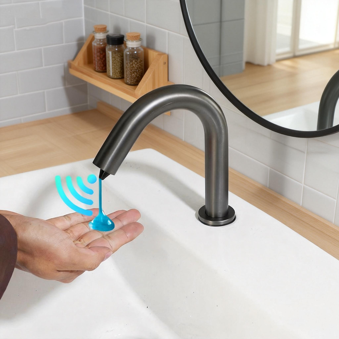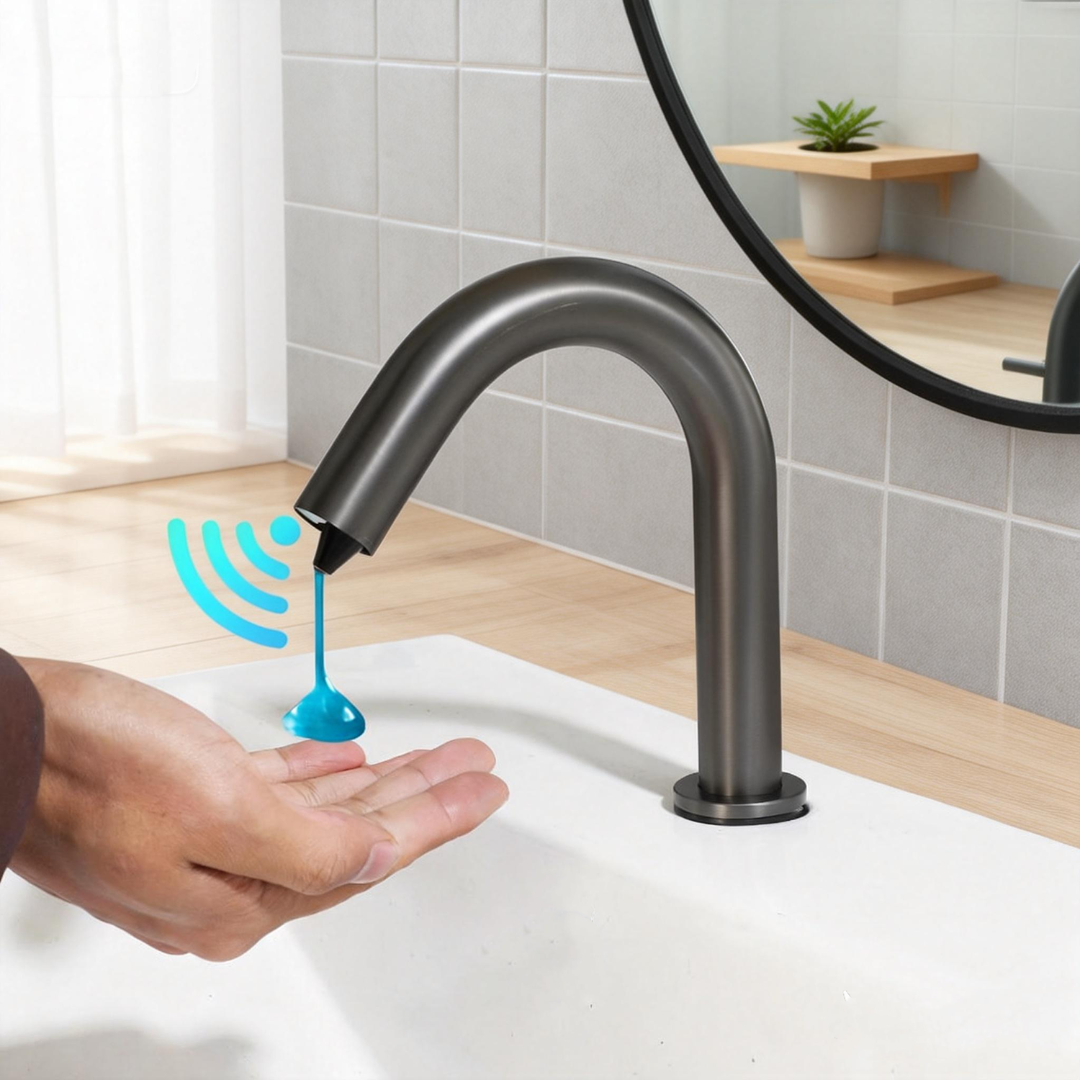 De Sensomatica Cesaro sensor zeepdispenser in gun metal biedt een hygiënische en contactloze oplossing voor het doseren van vloeibare zeep. Dankzij de infraroodsensor wordt de zeep automatisch gedoseerd zodra de hand onder de dispenser wordt gehouden. Dit maakt het systeem ideaal voor sanitaire ruimtes waar hygiëne en gebruiksgemak belangrijk zijn.