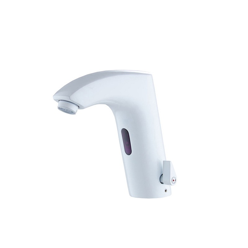 Robuuste, contactloze wastafelkraan met infraroodsensor en geïntegreerde warm/koud-regeling. De elektronica en batterijen zitten in de hals van de kraan, waardoor geen netstroom of externe regelunit nodig is. Ideaal voor publiek sanitair, kantoren en horeca waar hygiëne en snelle installatie belangrijk zijn.