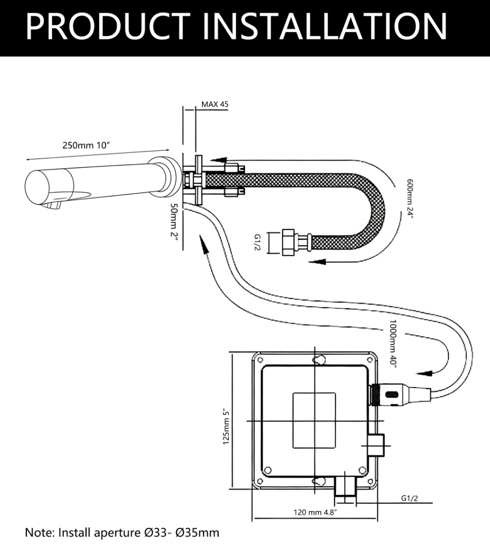 • Totale lengte van de zwarte infra rood kraan: 250 MM