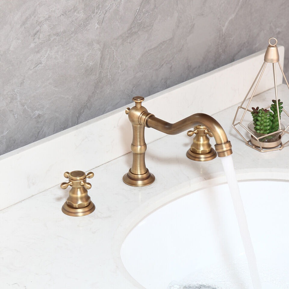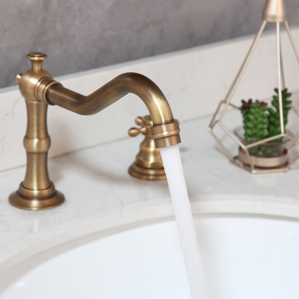 Mooie elegante stijlvolle 3 delige badkraan welke bronskleurig is afgewerkt.