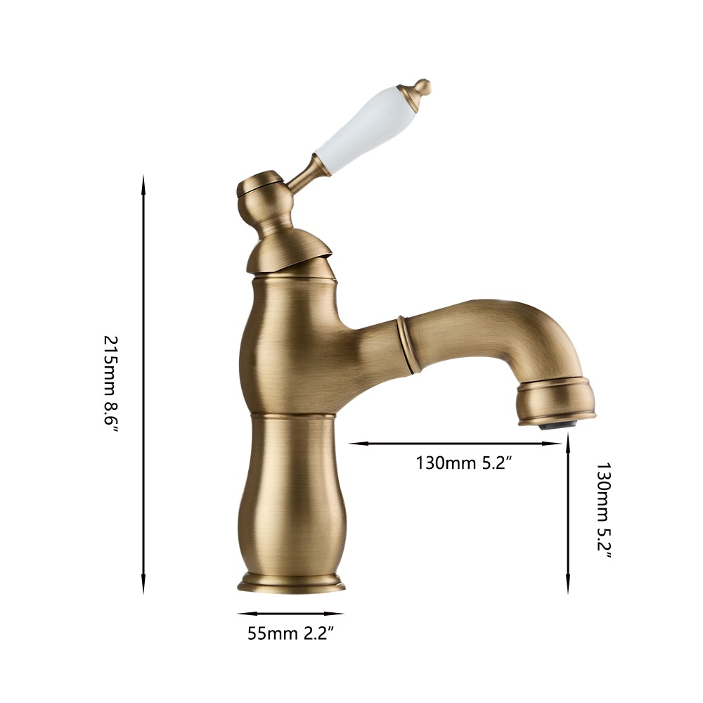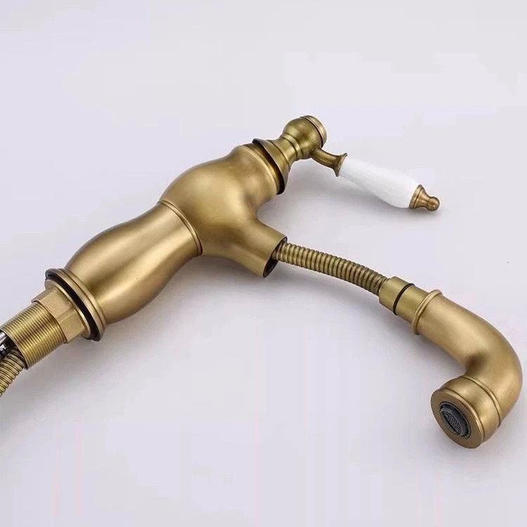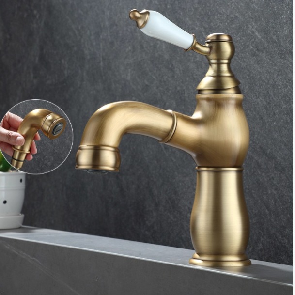 Deze stijlvolle bronskleurige wastafelkraan combineert een landelijke uitstraling met modern gebruiksgemak. Dankzij de uittrekbare uitloop is de kraan extra praktisch in gebruik, ideaal voor het eenvoudig reinigen van de wastafel of het vullen van emmers.