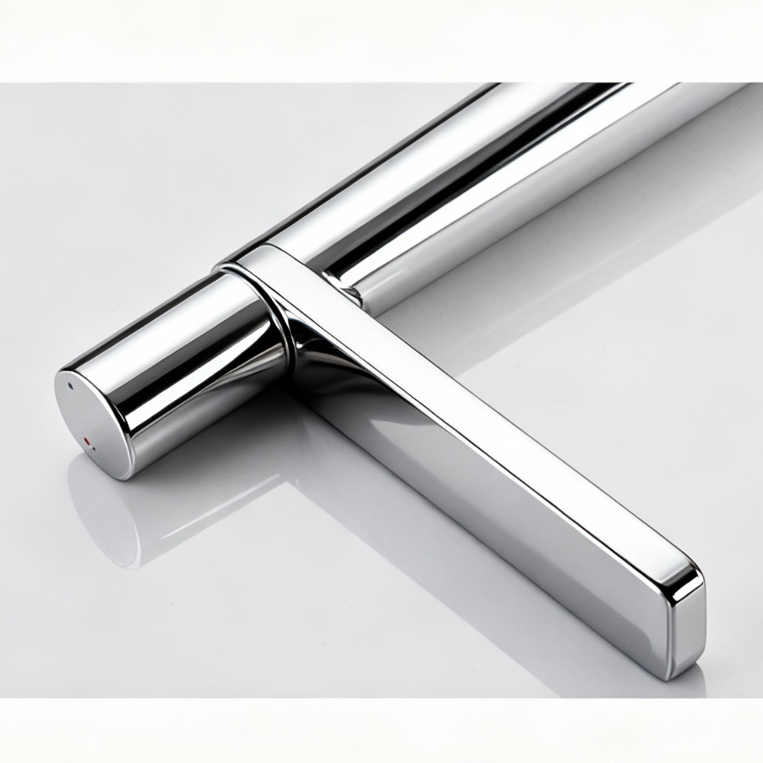 Deze moderne wastafelkraan in glans chroom combineert een strak design met optimaal gebruiksgemak. De glanzende afwerking geeft je badkamer een frisse en luxe uitstraling en past perfect bij zowel moderne als tijdloze interieurs.