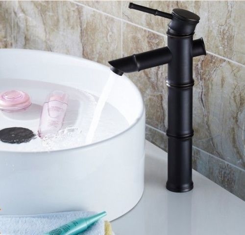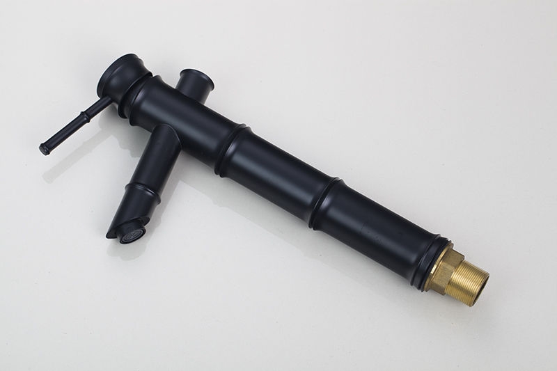 Een in bamboe wastafelkraan welke olie brons kleurig is afgewerkt:
