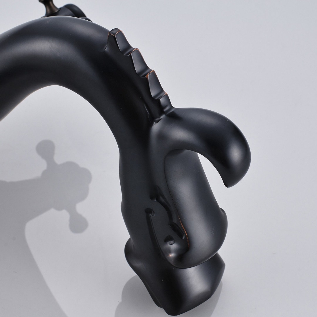 De kraan is met de grootste zorg vervaardigd uit massief messing en afgewerkt met een gewreven olie bronsrte afwerking in de vorm van een draak.