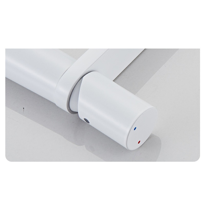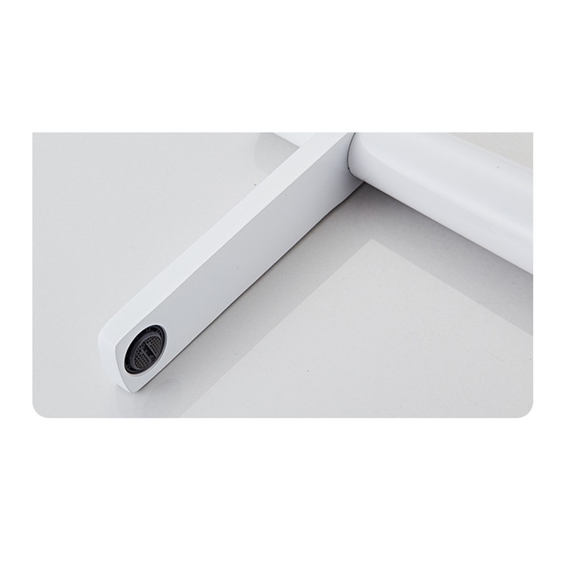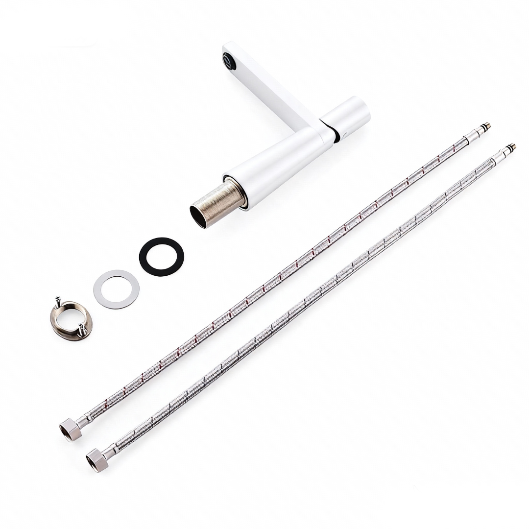 Deze moderne wastafelkraan in wit combineert een strak design met optimaal gebruiksgemak. De frisse, lichte afwerking geeft je badkamer een rustige en stijlvolle uitstraling en past perfect bij zowel moderne als minimalistische interieurs.