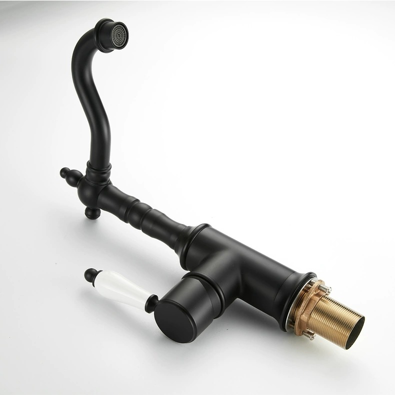 Deze klassieke wastafelkraan in zwart geeft de badkamer of keuken een elegante, tijdloze uitstraling. De sierlijke uitloop, verfijnde details en de porseleinen hendel zorgen voor een authentieke landelijke stijl met een luxe afwerking.