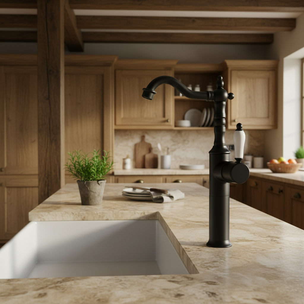 Deze klassieke wastafelkraan in zwart combineert een tijdloos ontwerp met een luxe, landelijke uitstraling. De sierlijk gebogen uitloop en verfijnde details zorgen voor een elegante look die perfect past bij zowel moderne als klassieke badkamers.