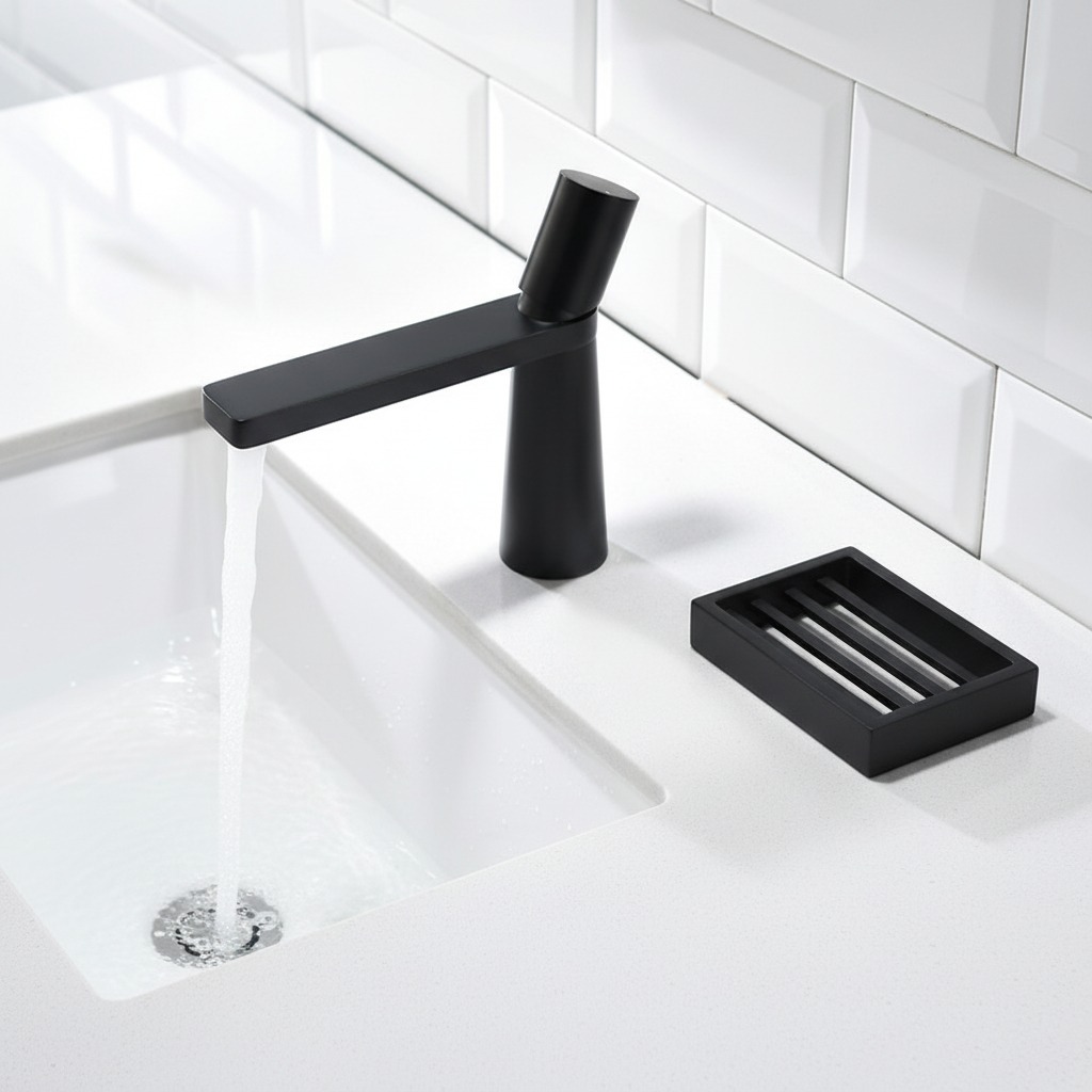 Deze moderne wastafelkraan in mat zwart combineert een strak design met optimaal gebruiksgemak. De minimalistische vormgeving en slanke uitloop maken deze kraan perfect voor moderne badkamers en opzetwastafels.